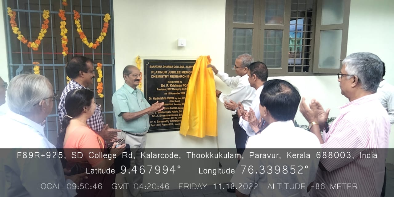 Inauguration of Platinum Jubilee Memorial Chemistry Research Block was done by the President of SD College Management Committe Sri. R. Krishnan on 11th, November, 2022. Management Committe Secretary Sri. N. Neelakantan, SD College Manager Sri. Krishnakumar and management committe member Sri. S. Ramanand, Laison Offier Sri. Narayanan Nampoothiri , College Principal Smt. Dr. N. Saraswathy…